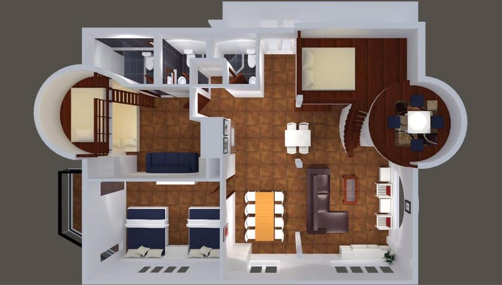 Biệt thự này có 3 phòng ngủ và mở ra ban công.