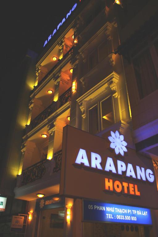 Tọa lạc tại thành phố Đà Lạt, cách Quảng trường Lâm Viên 1,7 km và Hồ Xuân Hương 1,8 km, Arapang Hotel cung cấp chỗ nghỉ với sảnh khách chung và WiFi miễn phí cũng như chỗ đỗ xe riêng miễn phí cho khách lái xe. Chỗ nghỉ này có các phòng gia đình và sân hiên. Chỗ nghỉ cung cấp dịch vụ lễ tân 24 giờ, dịch vụ phòng và dịch vụ thu đổi ngoại tệ cho khách.