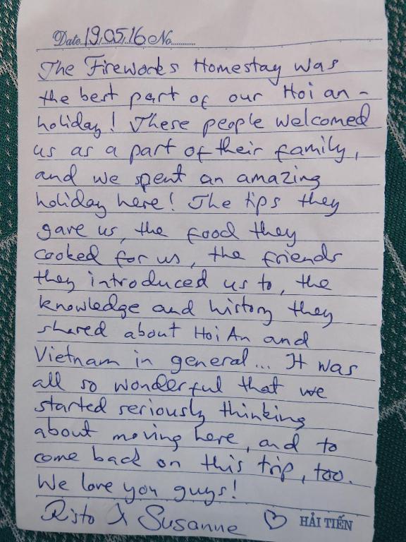 Các điểm tham quan nổi tiếng gần Fireworks Homestay gồm có Hội quán Quảng Đông, Chùa Cầu Nhật Bản và Hội quán Triều Châu. Sân bay gần nhất là sân bay quốc tế Đà Nẵng, cách homestay 23 km, và chỗ nghỉ cung cấp dịch vụ đưa đón sân bay với một khoản phụ phí.