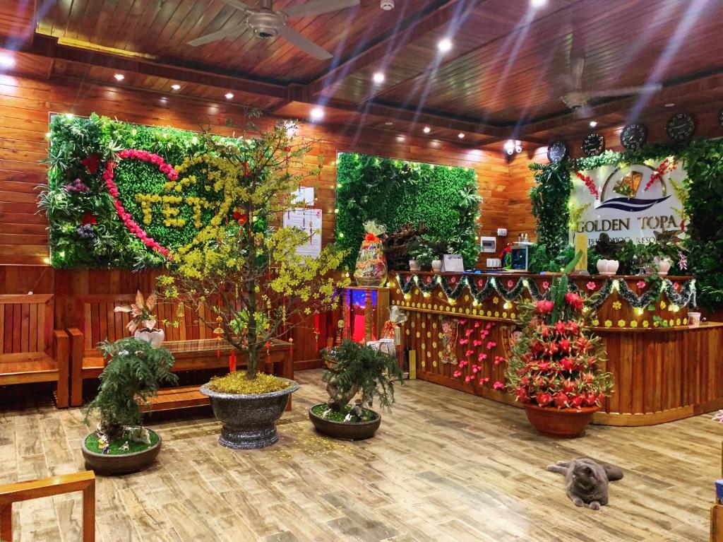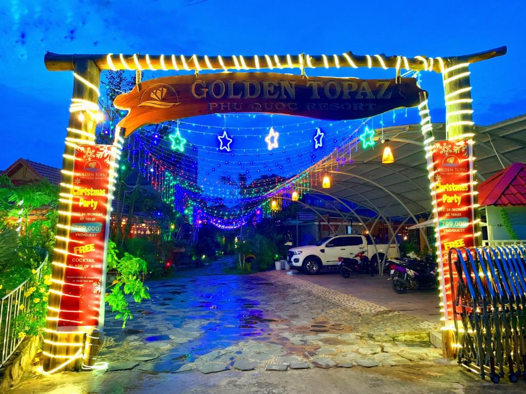 Chỗ nghỉ này cách bãi biển 3 phút đi bộ. Nằm trên đảo Phú Quốc, cách Bãi biển Ông Lang 350 m, Golden Topaz Phu Quoc Resort cung cấp chỗ nghỉ với nhà hàng, chỗ đỗ xe riêng miễn phí, hồ bơi ngoài trời và quầy bar. Mỗi phòng nghỉ tại resort 3 sao này đều có tầm nhìn ra hồ bơi và du khách có thể thư giãn tại sảnh khách chung cũng như khu vườn. Chỗ nghỉ cũng cung cấp dịch vụ lễ tân 24 giờ, dịch vụ phòng và dịch vụ thu đổi ngoại tệ cho khách.
