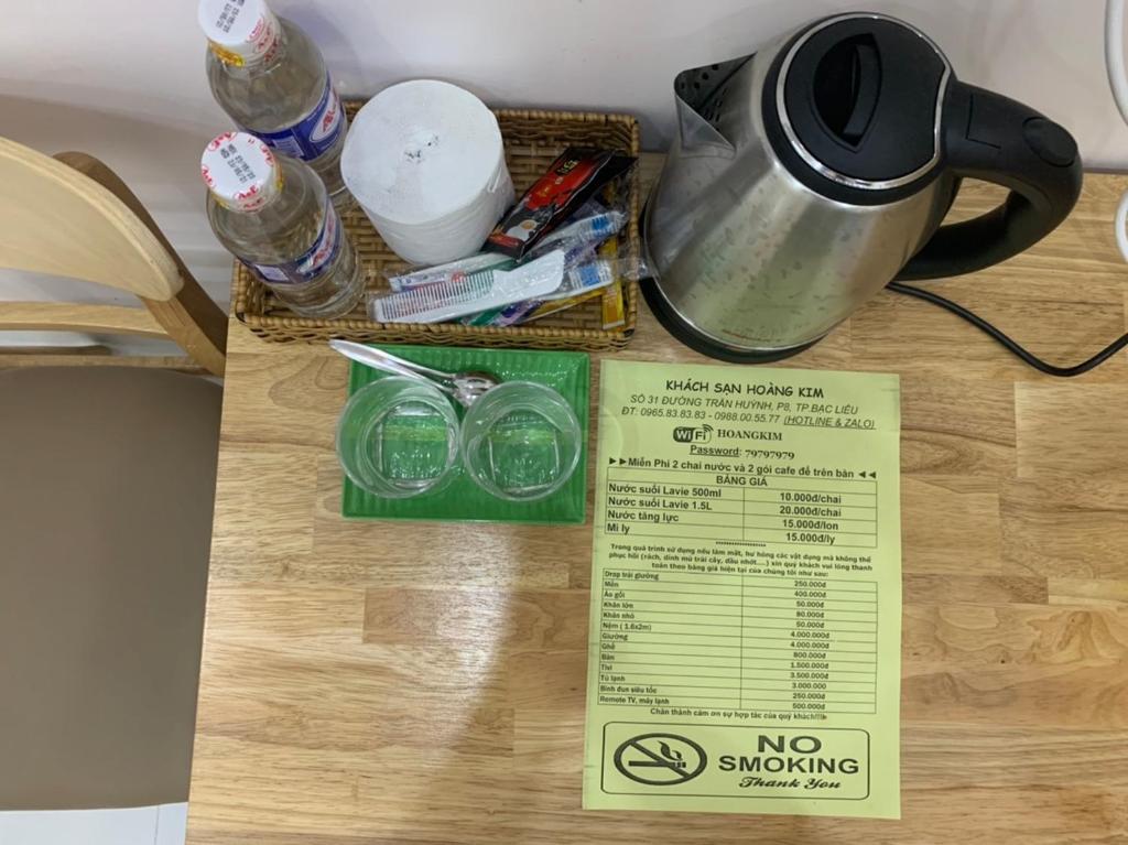 Khách Sạn HOÀNG KIM tọa lạc tại thành phố Bạc Liêu thuộc tỉnh Bạc Liêu, cách khu bảo tồn thiên nhiên Vườn chim Bạc Liêu 6 km. Chỗ nghỉ này có sân hiên. Trong số các tiện nghi của chỗ nghỉ này còn có dịch vụ phòng, sảnh khách chung và WiFi miễn phí trong toàn bộ khuôn viên. Chỗ nghỉ cung cấp dịch vụ lễ tân 24 giờ và dịch vụ thu đổi ngoại tệ cho khách.