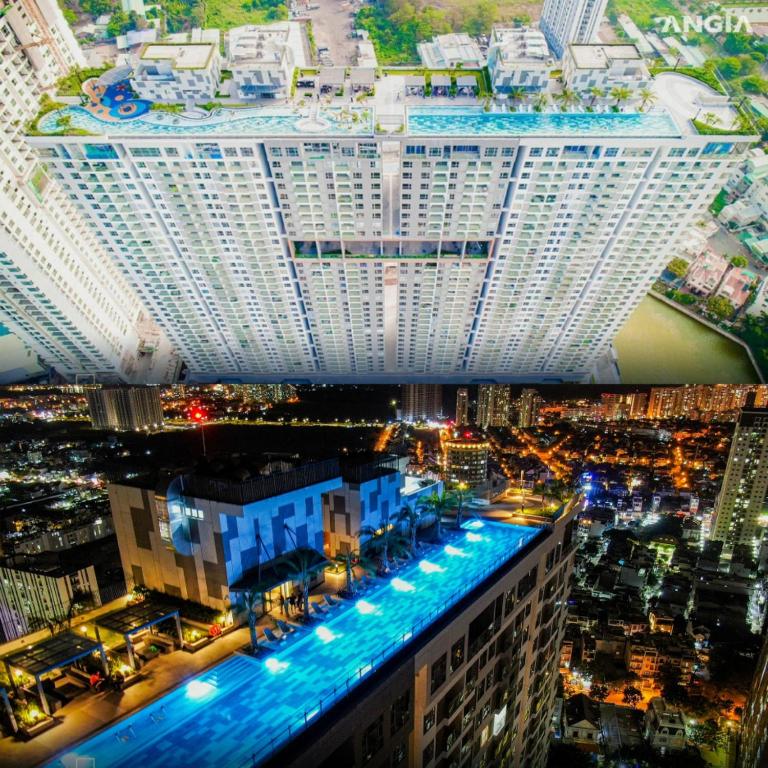 Featuring an outdoor swimming pool, a fitness centre, and a garden, Luxury River Panorama View for 5 - Rooftop Infinity Pool + Sauna Near Q1 + SECC provides accommodation in Ho Chi Minh City with free WiFi and garden views. This apartment features air-conditioned accommodation with a balcony.