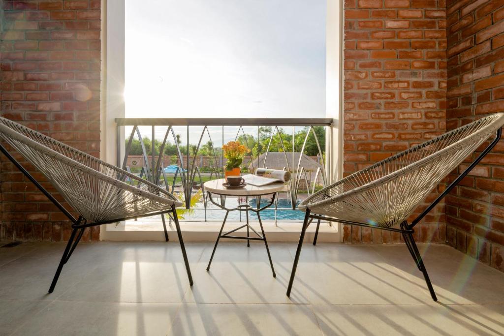 Phòng nghỉ tại resort có khu vực ghế ngồi và TV màn hình phẳng. Tất cả các phòng được trang bị bàn làm việc và máy pha cà phê.