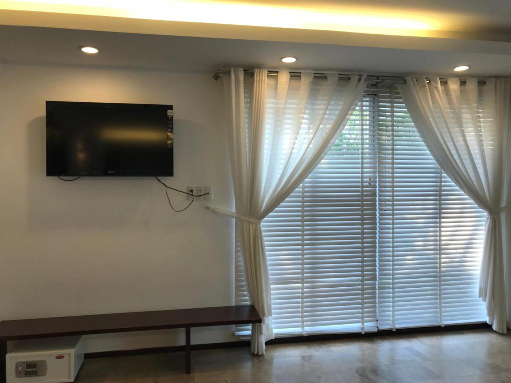 Căn hộ gắn máy điều hòa này có 2 phòng ngủ riêng, phòng khách, bếp đầy đủ tiện nghi và 2 phòng tắm. TV màn hình phẳng cũng được trang bị.