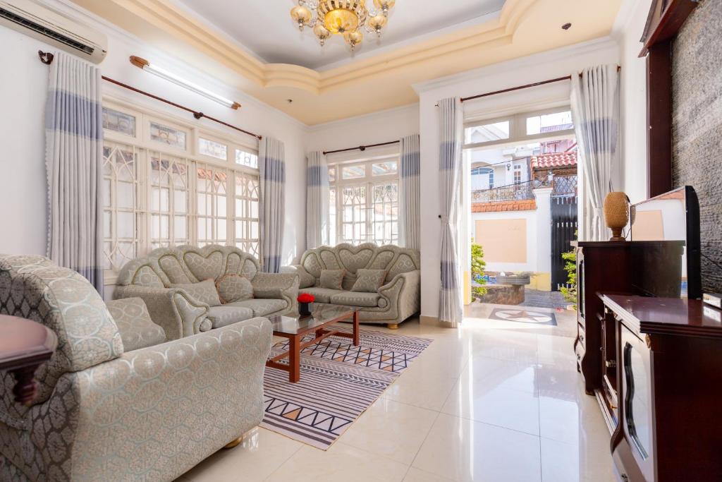 Chỗ nghỉ này cách bãi biển 10 phút đi bộ. Palm Villa 1 là một biệt thự tách biệt nằm ở thành phố Vũng Tàu, chỉ cách biển 500 m. Biệt thự có vườn và hồ bơi ngoài trời đồng thời cách Tượng Chúa Ki tô Vua 800 m. Wi-Fi được cung cấp miễn phí.