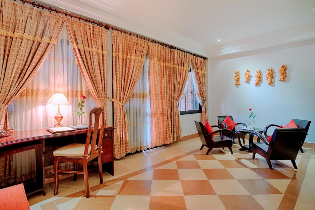 Các đặc sản địa phương có thể được thưởng thức tại nhà hàng của khách sạn hoặc trong sự riêng tư ở trong phòng của khách. Nhà hàng cũng có các món ăn châu Âu.