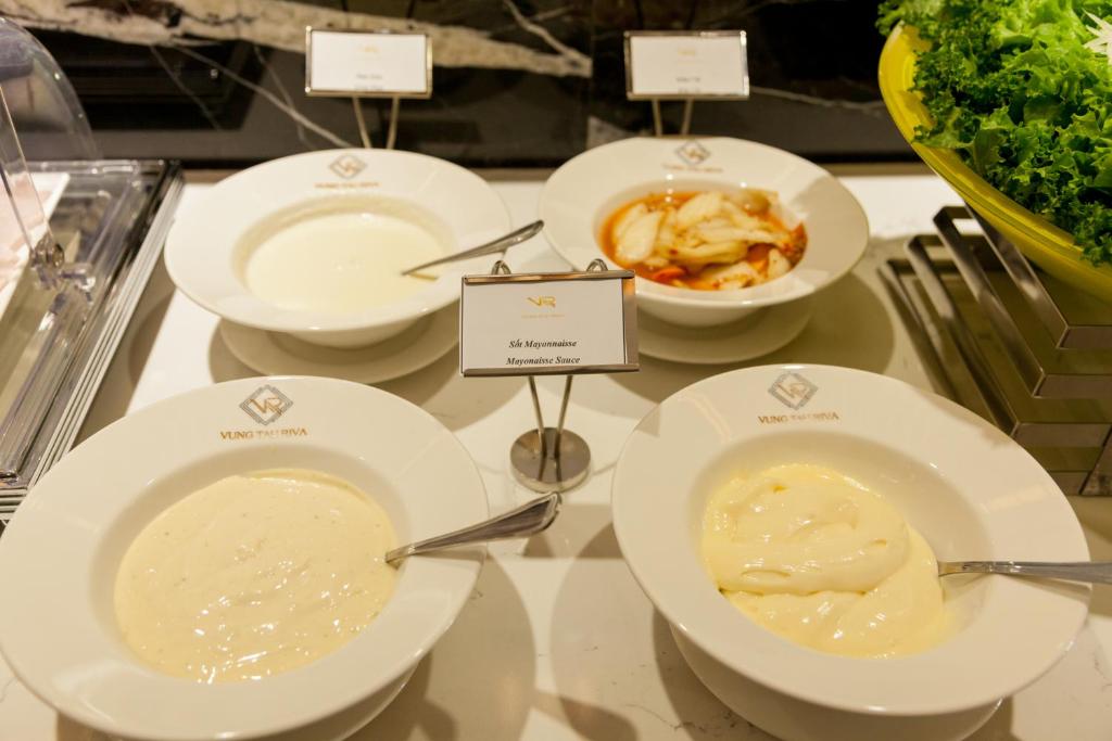 Mỗi phòng nghỉ tại khách sạn đều được trang bị máy điều hòa, khu vực ghế ngồi, TV truyền hình cáp màn hình phẳng, két an toàn và phòng tắm riêng đi kèm vòi xịt/chậu rửa vệ sinh, áo choàng tắm cùng dép đi trong phòng. Các phòng được bố trí ấm đun nước. Một số phòng có ban công trong khi những phòng còn lại nhìn ra biển. Tại Vung Tau Riva Hotel, tất cả các phòng được cung cấp ga trải giường và khăn tắm.